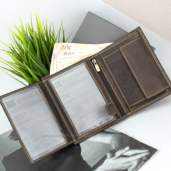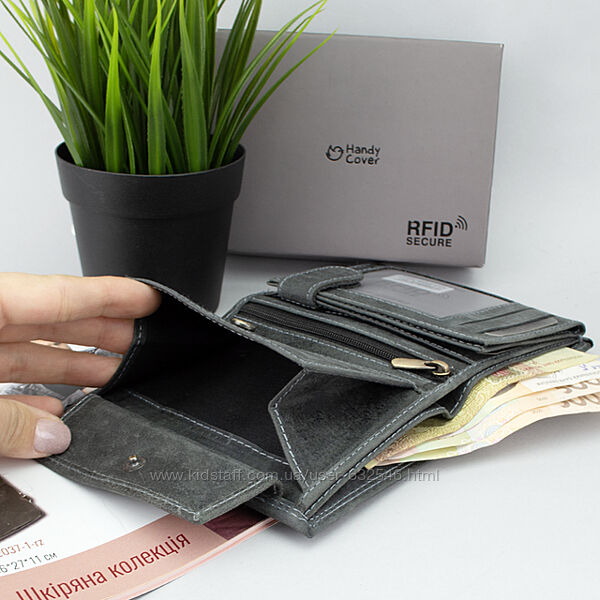 Чоловіче портмоне з натуральної шкіри від бренду Handycover - це найкраще придбання аксесуара для зберігання грошей. Ця модель гаманця порадує власників великої кількості пластикових карток, адже тут аж 9 кишень для них. А особливості буйволиної шкіри не розчарують згодом, ця шкіра набуває вінтажного дорогого вигляду при тривалому використанні. Усередині: 2 відділення для купюр, 9 слотів для карт, 3 прозорі кишені для пропуска або посвідчення, кишеня для монет на кнопці, потайна кишеня кишеня на блискавці. Портмоне без застібки. Спеціальна тканина в підкладці забезпечує RFID захист ваших кредитних карток від електронної крадіжки. Портмоне буде чудовим варіантом подарунка татові, братові, другу, чоловікові чи колезі. Дана модель є і в коричневому кольорі. Розмір 9,5*13*2,5 см Виробник - Польща. Продається у фірмовій коробці.