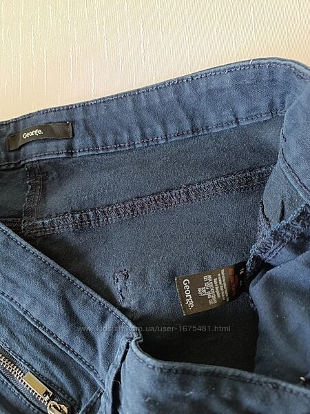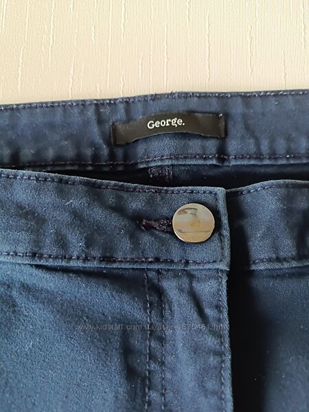 р 18 / 52-54 синие укороченные джинсы штаны бриджи слим зауженные большие батал George* Замеры в ровном виде и максимально потянув указаны на фото.