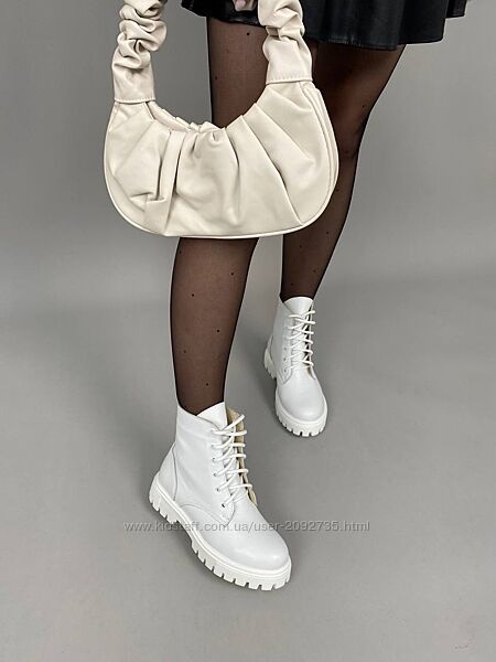 Черевики жіночі шкіряні білого, чорного, бежевого кольору, замшеві пудрового кольору, на шнурках, зимові, демісезонніАртикул: 6700