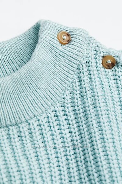 Трендовий комплект для вашої малечі. Джемпер із круглим вирізом у рубчик, ґудзиками на одному плечі, спущеною лінією плеча. Штани тонкої в´язки, талія на резинці та шнурівці Склад: 60% коттон, 40% акрил Підійде як дівчинці, так і хлопчику Розмір 80, 92, 98, 104