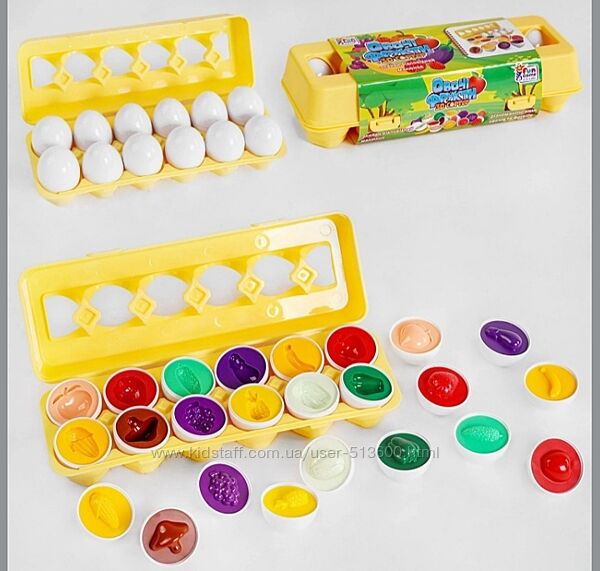 Игрушка сортер для детей в виде куриных яиц поможет развивать у малыша мелкую моторику рук и логическое мышление. А также способствует самостоятельной игры ребенка, изучению цветов, форм.Каждое яйцо состоит из двух частей, внутри которого размещена одна из различных фигур. Цель игры в том, чтобы сопоставить половинки с одинаковым узором и цветом.