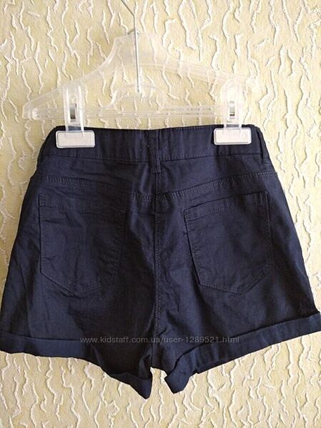 Хлопковые темно-синие шорты с отворотом на девочку 9-10 лет, Gemo, Бангладеш.Талия регулируется внутри шорт резинкой с пуговицами, ПОТ 31см+ можно уменьшить за счёт резинки.