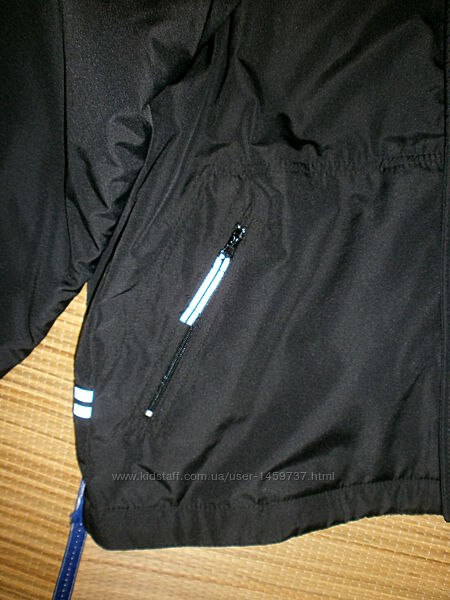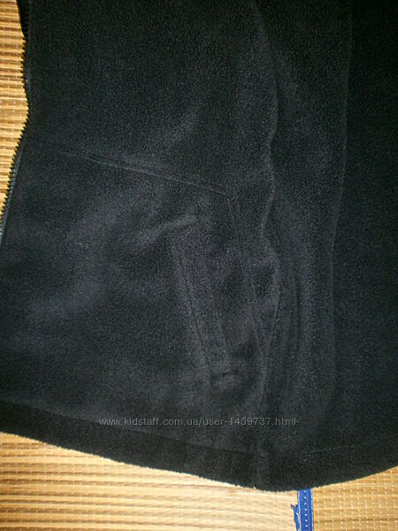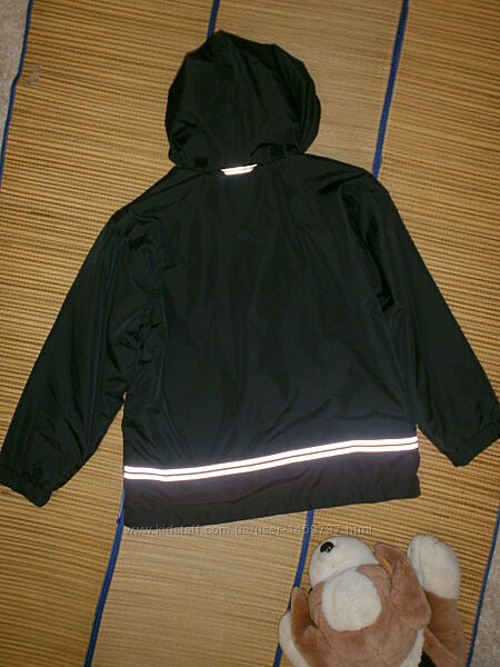 Отличная двусторонняя курточка ветровка для мальчика. Цвет черный. Застегивается на молнию и клапан. С капюшоном, капюшон сворачивается и прячется в воротник под липучки. Рукава на резинке. Светоотражательные ленты. Два кармана на молнии. Подкладка флисовая. Если вывернуть на вторую сторону, то флис будет сверху, тоже будут два кармана и сзади отражательная лента. Состояние идеальное. длина от верхней точки плеча - 56,5 длина от подмышки - 32 рукав от плеча - 46 рукав от подмышки - 38 ПОГ - 47 ширина плеч - 41 100% предоплата. Доставка НП, Укрпочта. Оплата за доставку при получении. Без обмена и возврата.
