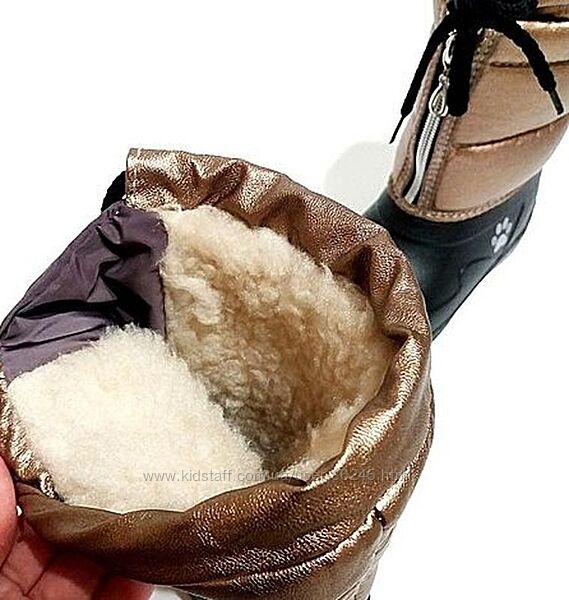 Класні дитячі чобітки. Взуття виготовлене з пінки ЕВА, тому ніжки Вашої дитини завжди будуть сухими та теплими. Зверху плащівка водонепроникна. Реально дуже легкі (вага 100г) і не втомлюватимуть ніжку. Хороша система лиття чобітка дозволяє дитині почуватися комфортно у цих чоботях. Ніжкам комфортно у взутті. Дуже легко миються. Підошва рельєфна, не слизька. Усередині утеплювач – шерсть. Температурний режим – до мінус 10С.→ Модель унісекс (підійдуть як на хлопчика так і на дівчинку), маломірки