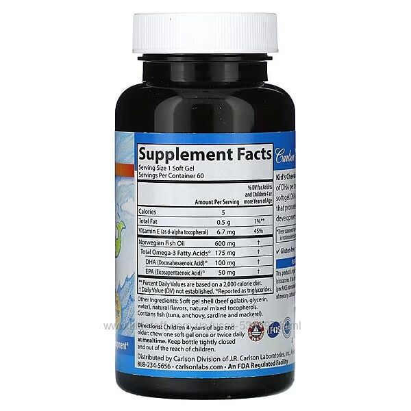 Подробное описание: Carlson Детские жевательные ДГК апельсин. 100 мг, 60 мягких таблеток