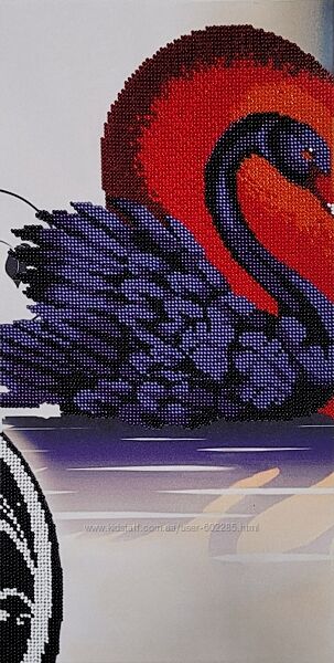 Подробное описание: Вишивка бісером модульнаЧорний та білий лебеді