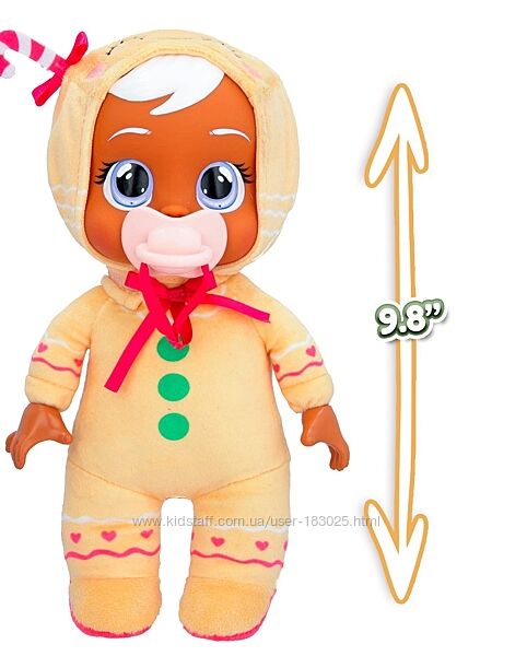 Особливості та деталіДжинджер одягнена в милу комбінезну піжаму з імбирним печивом!Кожна лялька має зріст понад 9 дюймів із надзвичайно м’яким приємним тілом у піжамі на тему Різдва/зими! М’який корпус робить їх надзвичайно легкими та ідеальними для подорожей!Зберіть усіх 6 різних персонажів Різдвяного видання: Клауса, Руті, Розі, Елфі, Джинджер і Сноуі!Cry Babies Tiny Cuddles плаче справжніми сльозами! Додайте води та натисніть на їхні голови, щоб спостерігати, як вони плачуть!Найм´якша версія з усіх Cry Babies, що робить їх надзвичайно приємними!