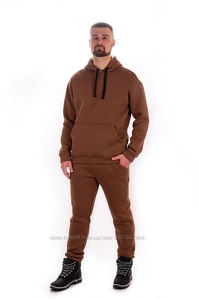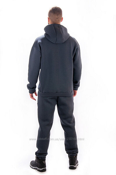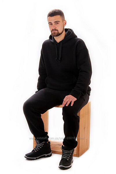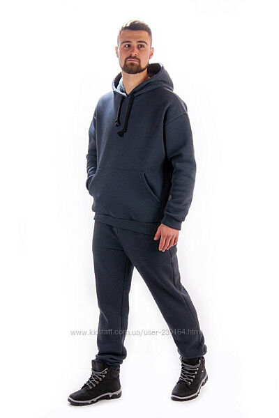 ЗАМІРИ на останьому фото!Теплий костюм для чоловіків чудової якості: худі з капюшоном та штани з пришивним поясом на еластичній тасьмі. Худі модного зручного крою oversize, штани стандартного вільного ступеня прилягання. Модель представлена в базових класичних кольорах. Полотно відмінної якості з густим начісуванням всередині, не скачується, не линяє, при правильному догляді усадка мінімальна.