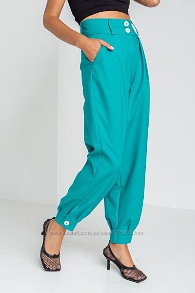 Подробное описание: Стильные повседневные женские брюки с высоким поясом и манжетами