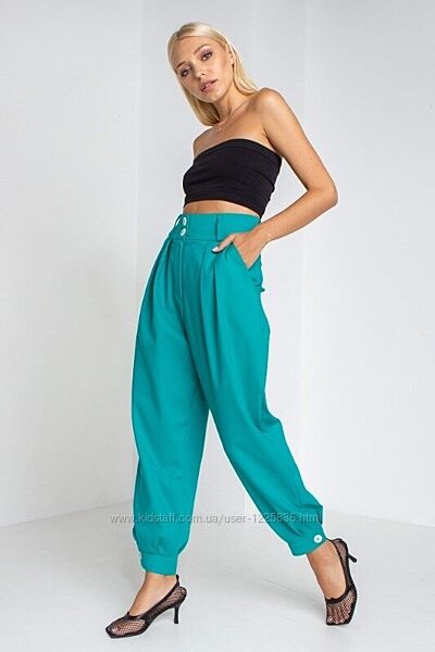 Стильные повседневные женские брюки с высоким поясом и манжетами