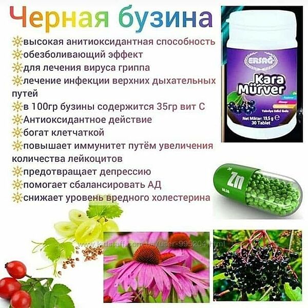 Подробное описание: Эрсаг 2063 Черная бузина сбор иммунитет, вирус, нервы, гельминты, вес, цинк