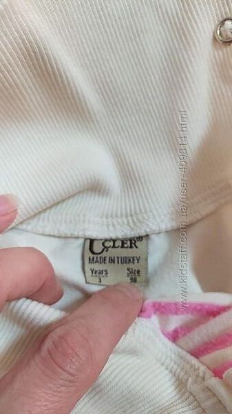 2. Гарненький гольфик із зайчиком, декорований камінчиками. На бірці 98 р., на 3-4 роки. Збоку горловина на 3 кнопках, зручно одягати. 95% - коттон, 5% - еластан . Туреччина.