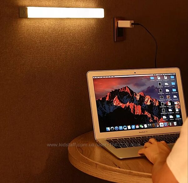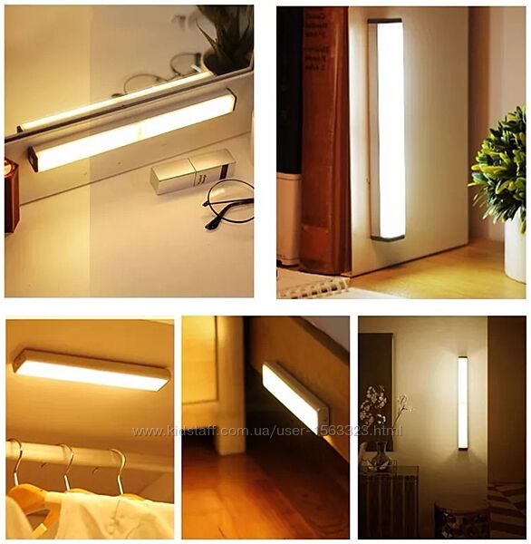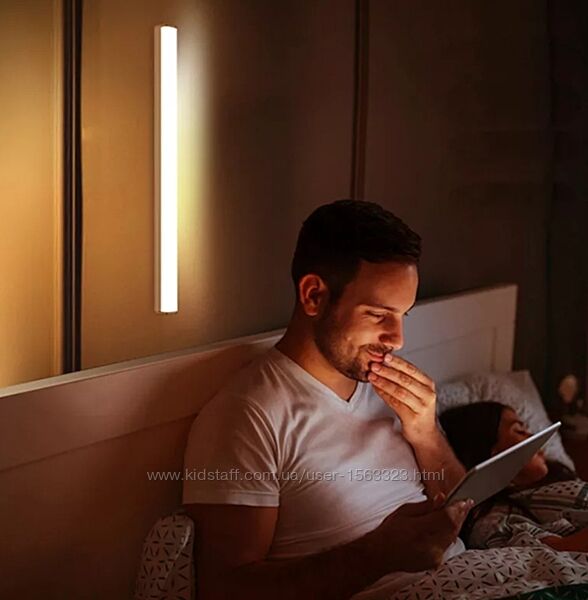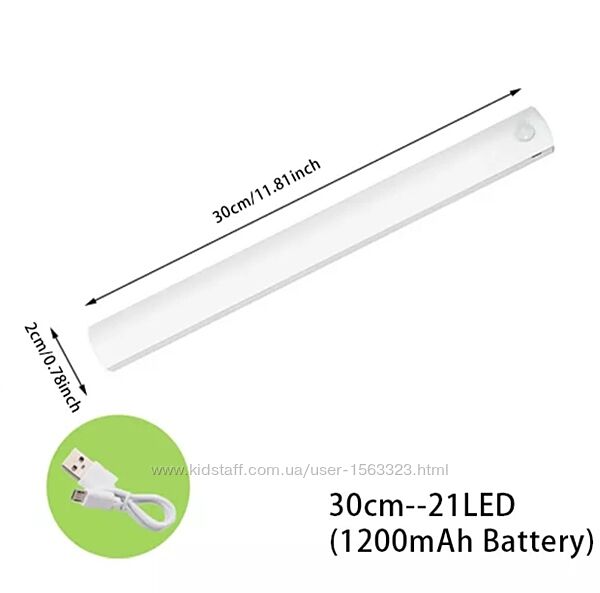 Акумуляторний ліхтар, лампа, світильник, нічник з датчиком руху та освітлення. Заряджається через мікро USB type C (шнур в комплекті).Розміри: загальна довжина 30,5 см, кількість світлодіодів 21.