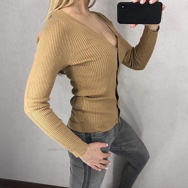 Подробное описание: Бежевая кофта в рубчик на пуговицах. Amisu.