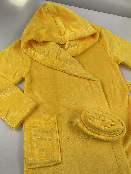 Комфортний халат яскравого жовтого кольору.Халат з якісного матеріалу - вельсофт, легко прати, швидкосохне.