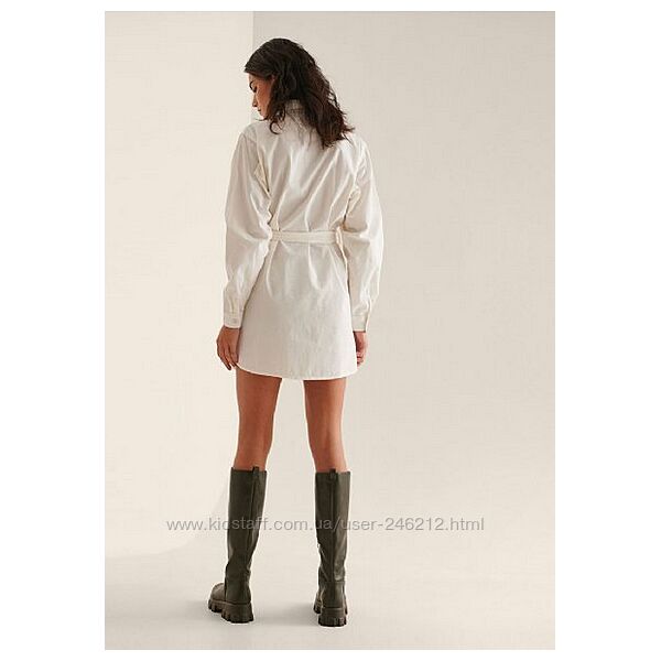 Белое платье Na-kd в рубашечном стиле .Платье прямого кроя, спереди застежка на пуговицы.