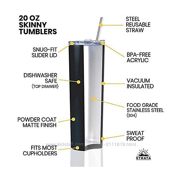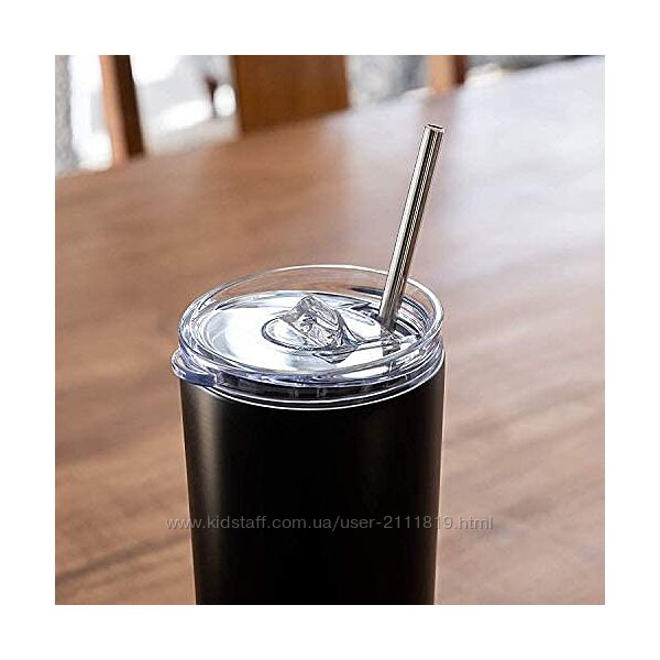 В комплекте акриловая крышка с защитой от брызг, соломинки из нержавеющей стали и очиститель для соломинок.