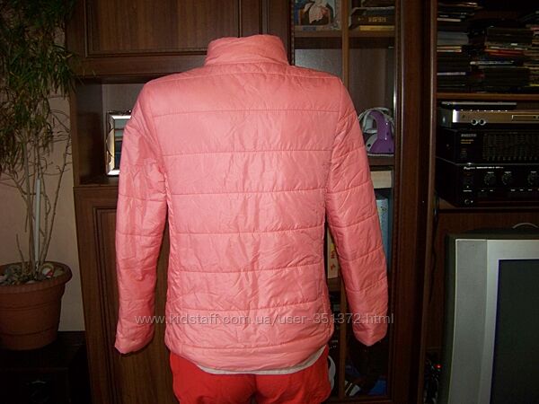 Куртка классическая легкая и воздушная, но теплая, утеплена тонким слоем синтепона, демисезонная. В приятном цвете коралловый розовый или розовый персик. Размер ориентировочно MS. Есть боковые карманы на молнии, воротник стойка, идеально защищает от ветра. Вообще куртка очень уютная и удобная. Носилась совсем мало. Внешне дефектов нет. Внутри есть пару мест с распоротой подкладкой. В цене учтено.Замеры по ткани: