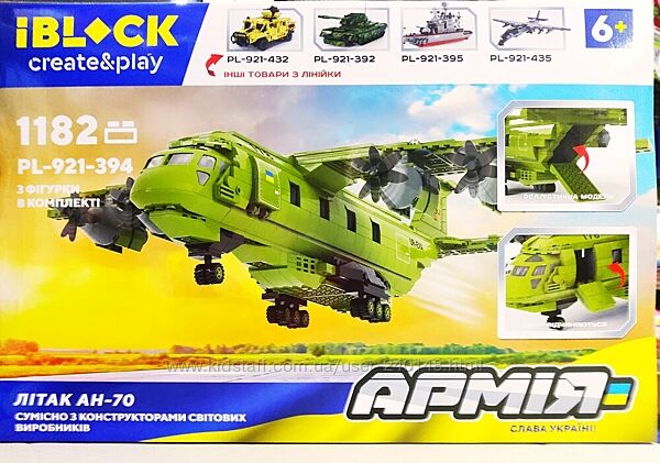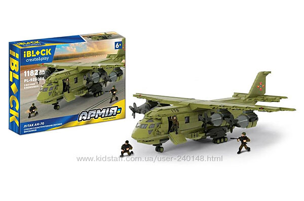 Подробное описание: Конструктор IBlock PL-921-394 АРМІЯ Літак АН-70, 1182 дет.