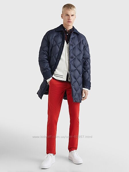 Мужское пальто Tommy Hilfiger. Пальто-карандаш представляет собой классический силуэт, который сочетает в себе как повседневный, так и нарядный образ. Утепленный пухом RDS с боковыми вентиляционными отверстиями на кнопках, этот слой идеально подходит для более прохладных дней.