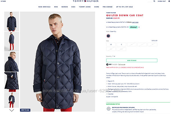 Подробное описание: Теплое стеганное пуховое пальто куртка Tommy Hilfiger, размер ХХХЛ, 58 EUR