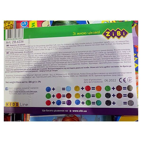 виготовлений у Європейському Союзі, відповідає всім нормам безпеки іграшок для дітей як України так і ЄвропиQR-код з посиланням на майстер-класи з ліплення від ZiBi на кожній коробці