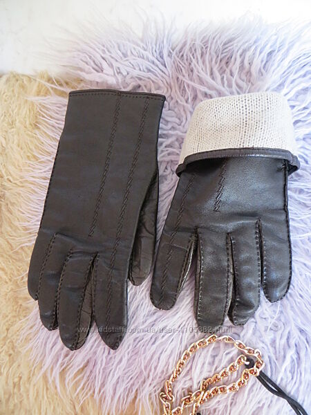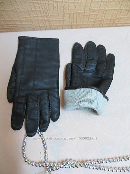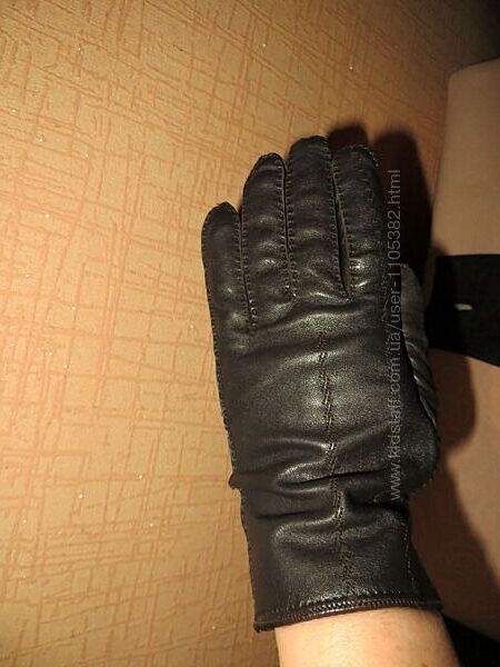 Женские кожаные перчатки,утепленные.Цвет-темно коричневый,ближе к черному,мягкая кожа,отличного качества.