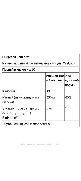 Подробное описание: Магний глицинат, США, Глицинат магния с высокой усвояемостью, 350 мг