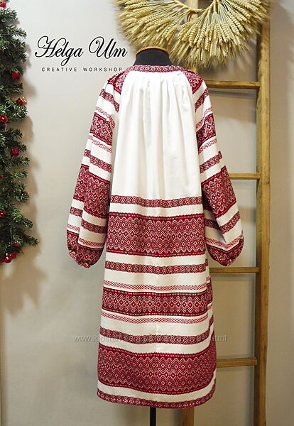 Довга, широка, пишні рукава зібрані на ґумку, що робить виріб зручним для одягання на будь-яку повноту.