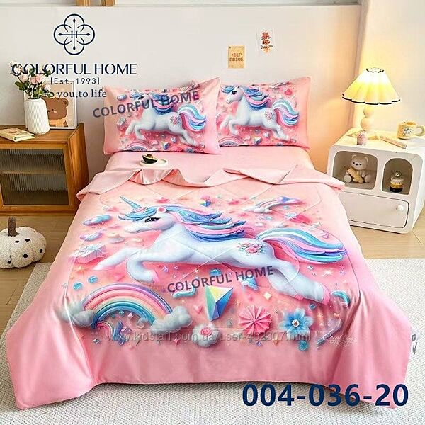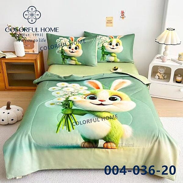 Постільна білизна з літньою ковдрою з дитячими принтами 😍✅Тканина мікросатин