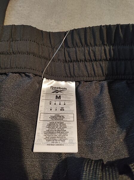 Спортивні штани фірми Reebok, оригінали замовлялися на офіційному сайті, вказаний розмір М, як на мене маломірять гарно сядуть на С орієнтуйтеся на заміри пояс 40, бедра 54 довжина 103, на всі цікавлячі питання відповім, тканина приємна злегка тягнеться
