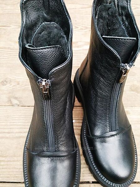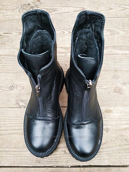 Стильні зимові черевики з натуральної шкіри. Взуття гарно пошите.