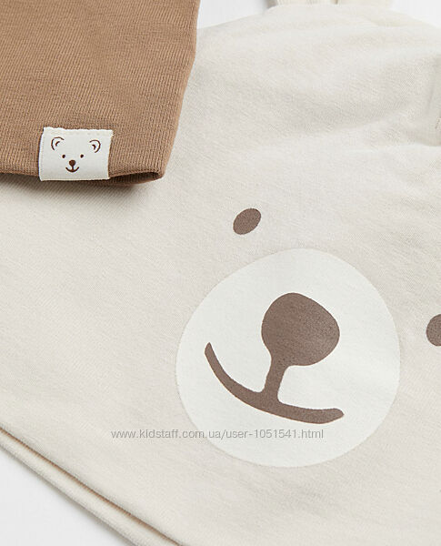 Комплект шапок - 2 шт від H&M з м’якого бавовняного трикотажу ( двухслойні) , бежева -з вушками вгорі та коричнева . РІСТ 86-92 ( висота 17 ширина 22 см ) 98-104 ( висота 18 ширина-23 см ) ЦІНА за 2- шт - продаж лише комплектом !СКЛАД-Бавовна 95%, еластан 5%