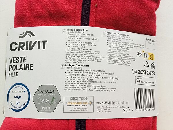 Crivit Кривит Флісова кофта фліска 134 - 140 Німеччина