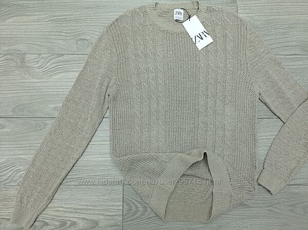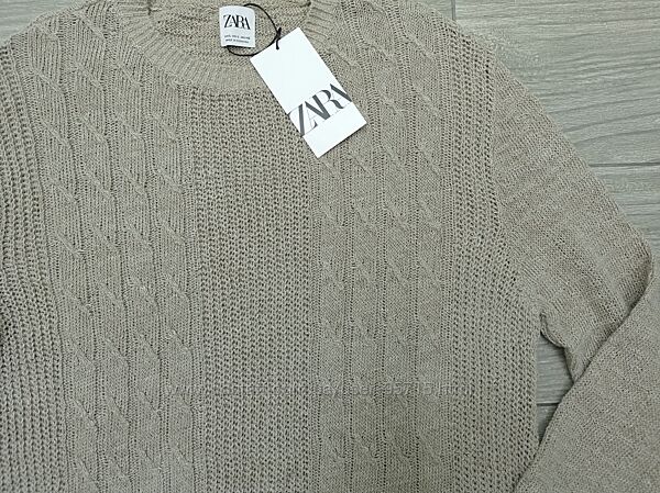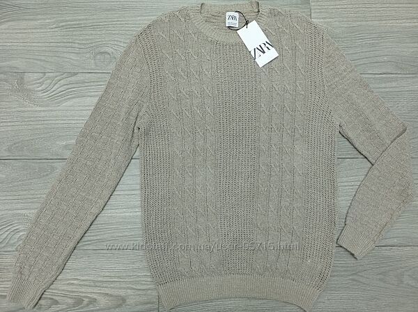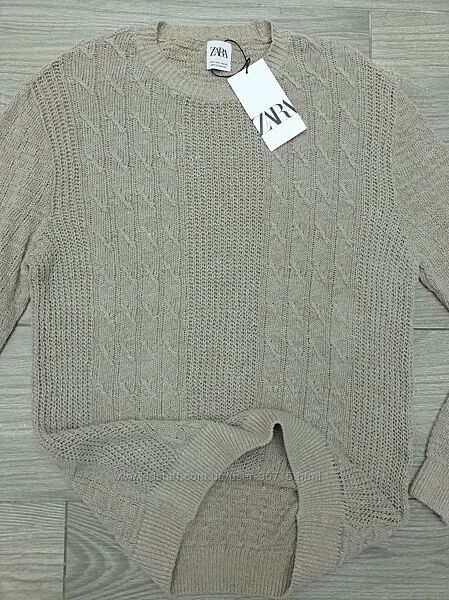 Подробное описание: Льняной свитер фактурной вязки косами ZARA - L