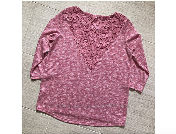 Нежный джемпер кофта, из тонкого трикотажа, с вязаным кружевом, Gina Benotti.Германия.