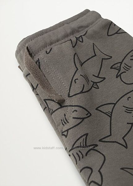 Шорти для хлопчика Mango.Бавовняні шорти сірого кольору з принтом акул. Бавовняна тканина. Еластичний пояс зі регульованим шнурком. Ззаду накладна кишеня.
