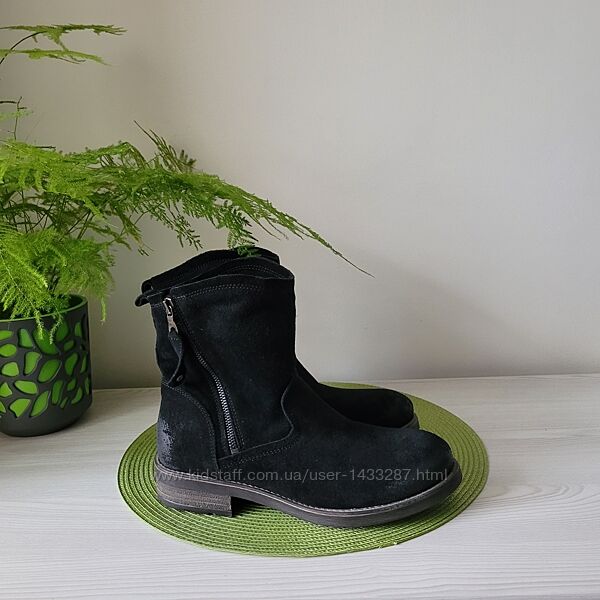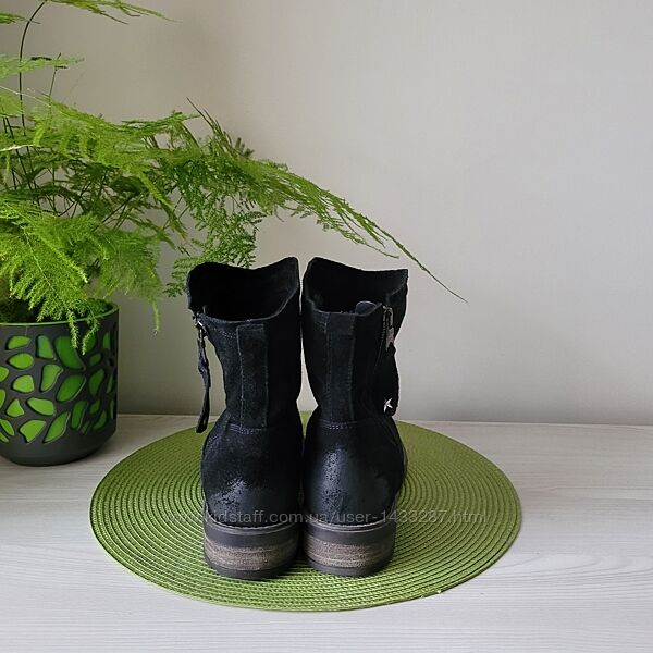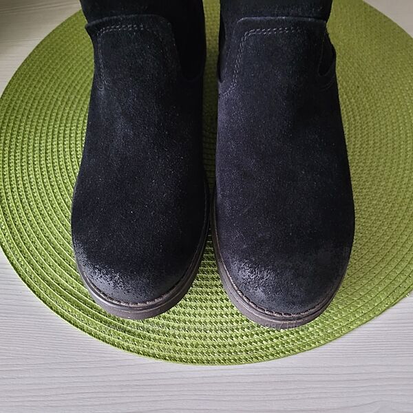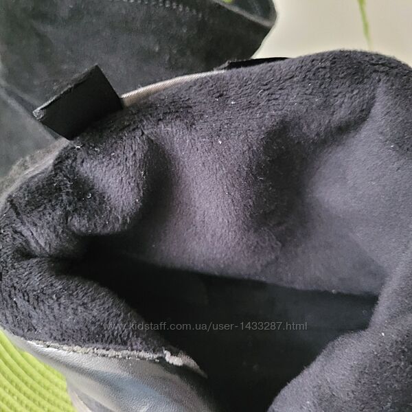 Верх замша із фабричним, захисним напиленням на п´ятках та носках. Серединка та устілка утеплені флісом. Устілка м´якенька по всій довжині. Підошва неслизька, з хорошим зчепленням з поверхнею. Замочок із правої сторони.