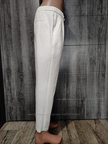 Классные льняные штаны Atmosphere. Цвет молочный. Есть боковые карманы. Состав - 56% лен и 44% вискоза. Состояние идеальное, без нюансов.Размер UK 10, Euro 38. Внимательно смотрите замеры:
