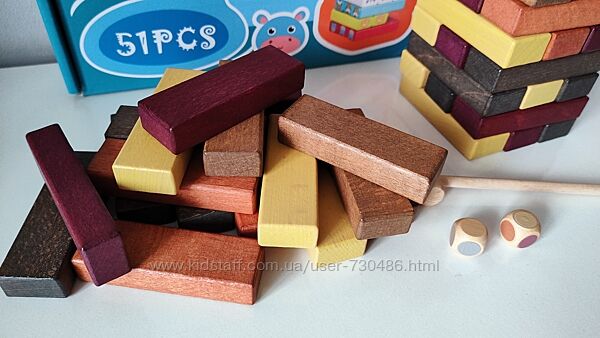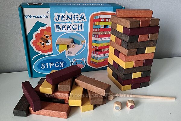Дерев´яна гра з блоками "Дженга" захопить як малюків, так і їхніх батьків!Гра навчить тримати баланс, бути акуратним та зібраним.