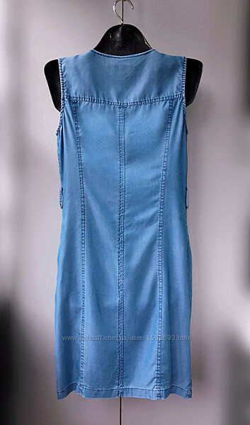Стильное джинсовое платье. В жаркую летнию погоду платье порадует комфортностью. Хорошо сочитается с мокасинами и каблуком. Изделие прямого фасона, при желании можно воспользоваться поясочком.Размер : S/36Замеры на последнем фото.