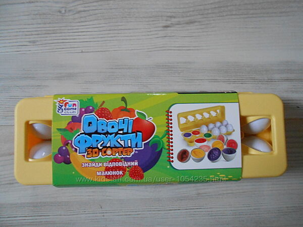 Продам необычные 3D сортеры: яичный лоток "Овощи и фрукты", "Цифры", "Транспорт" и "Животные".1. 3D сортер "Овощи и фрукты" яичный лоток. Половинки яиц подходят друг к другу не только по цвету, но и по форме - на одной половинке эта форма выпуклая, на другой в виде выемки. Малыш подбирает подходящие по цвету и форме половинки яиц и составляет их. Сортировочные яйца станут для малыша не просто интересной игрушкой, но и помогут развить моторику рук, концентрацию внимания и память. Способствуют изучению цветов и форм,развивают логическое мышление, координацию движений и зрения. Размер одного яйца 6х4,5 см., материал: пластик. В наборе 12 штук яиц, 24 половинки. Возрастная категория 3+. Цена: 350 грн.