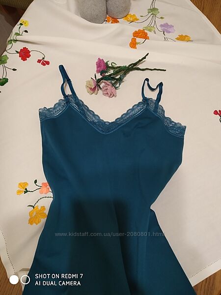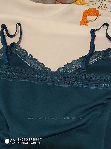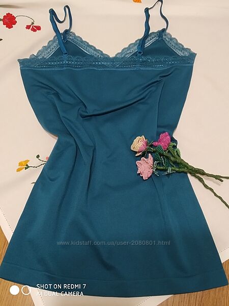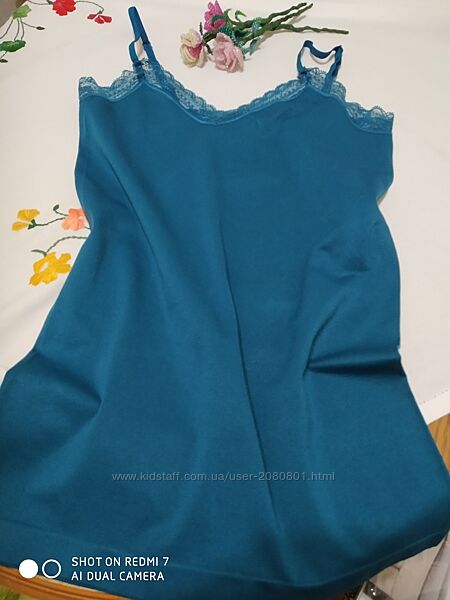 Чудова полотна майка з еластаном,з ефектом утяжки.Колір насичений морської хвилі. Нова,у користуванні не була.По бірочці L, можна і на МЗаміри скину додатково