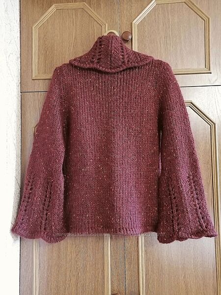 Абсолютно новый тёплый свитер крупной вязки с роскошными ажурными воротником и рукавами, не секонд, подойдёт на украинский размер 44, цвет свитера чуть темнее, ориентируйтесь по цвету на последнее фото.