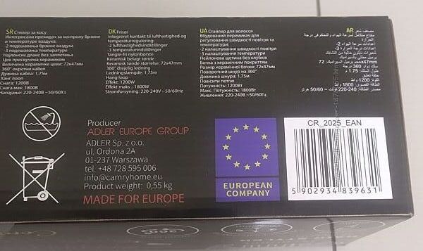 Подробное описание: Удобный фен-щетка для волос Camry CR2025 из Европы с гарантией