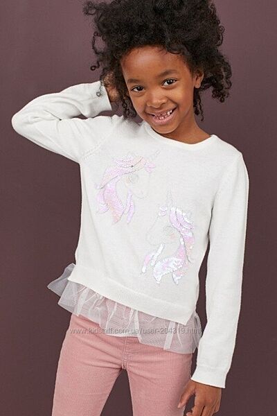 Подробное описание: Шикарный джемпер с единорогами из пайеток H&M
