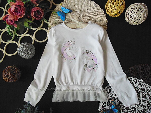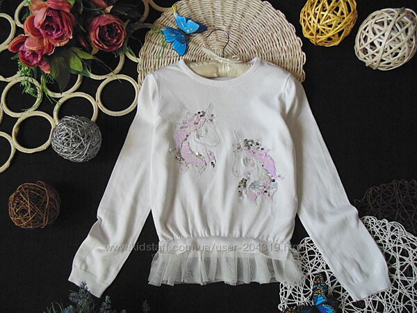 Шикарный джемпер с единорогами из пайеток H&M на 8-10 лет,рост 128-140 см