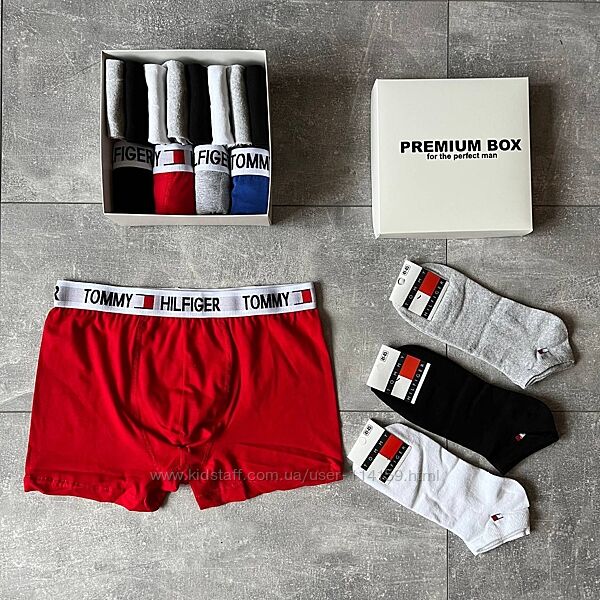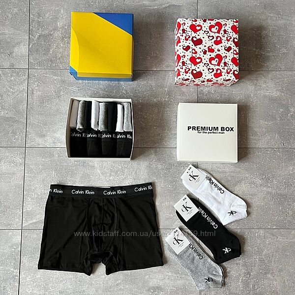 Комплект 4 штуки білизни + 8 пар шкарпеток з коробкою на вибір🔥Матеріал: 95% бавовна, 5% еластан (premium quality)