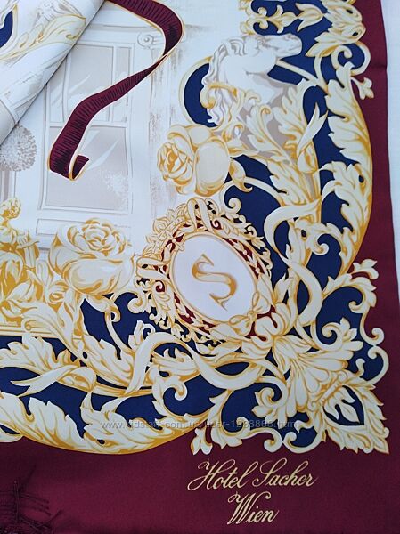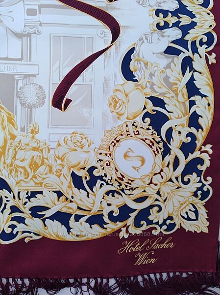 Коллекционный шелковый шарф Hotel Sacher Wien от швейцарского дизайнера Patrick Stoffel.Шарф двухслойный,из натурального саржевого шелка,размер 68х136 бахрома 9см.,в отличном состоянии.