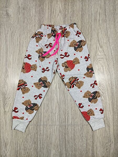 Піжама для дівчинки Ведмедики. Полотно 95% бавовна на байці. Розміри 6-7, 7-8 років. Виміри:6-7 років: кофта- ширина плеч 31 см, довжина рукава від плеча 41 см, Пог 37 см, довжина виробу 47 см; штани- Пот 26 см, стегна 46 см, довжина виробу 71 см, крок 46 см.